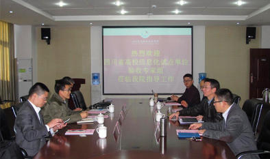 11月2日上午,四川省教育信息化试点验收专家组一行三人在验收专家组组长、四川师范大学网络与信息化管理处副处长龚学文的率领下莅临我院,对教育信息化试点建设情况进行评估验收。验收会在综合楼0903会议室举行,党委书记周勇出席并主持验收会,副院长韩鹏、信息中心、教务处负责人及相关工作人员参加了会议。