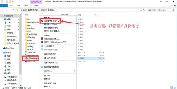 2、打开下载的“协同办公系统插件”文件夹,找到安装程序,右键点击“以管理员身份运行”