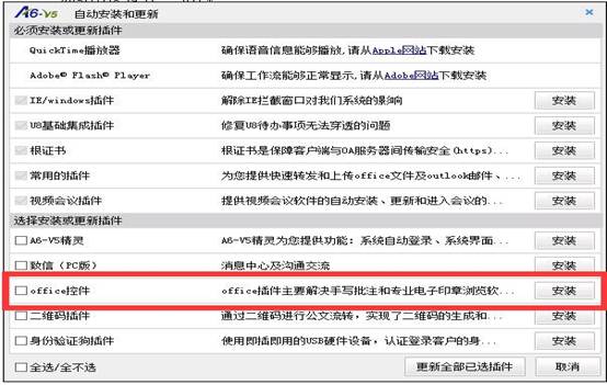 3、选择需要安装的插件,点击安装即可(office控件必须安装)