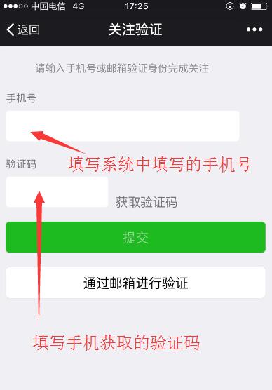 第五步:关注验证,输入协同办公系统中填写的手机号,点击获取验证码,收到验证码后填写后并提交进行验证。